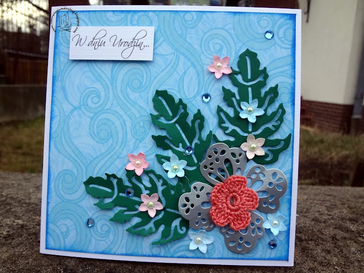 Wykorzystałam kwiatuszki mojej produkcji, w tym nawet szydełkowy: